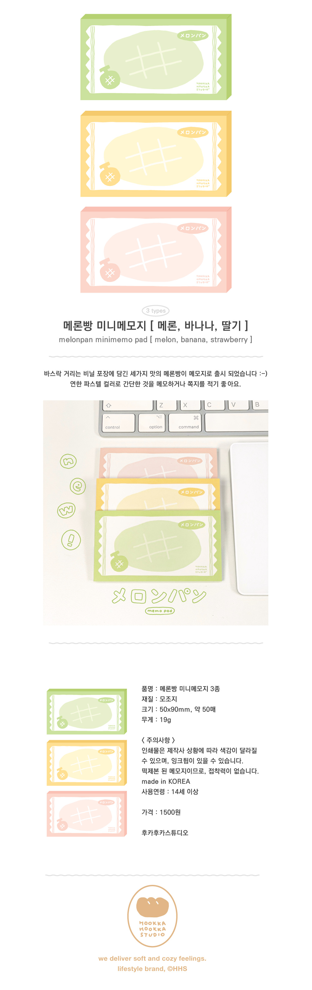 후카후카스튜디오 | 메론빵 미니메모지 3종