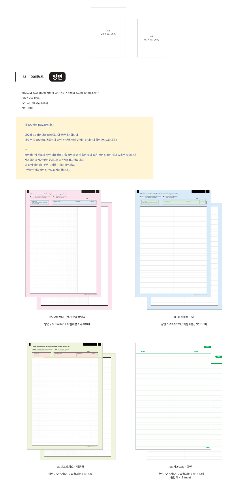 아오라문구 | (단종) B5 도큐먼트 양면 노트패드 (마린블루-줄/Only 1)