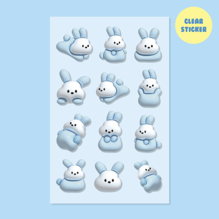미니팩 | 아쿠아 토끼 투명 미니스티커