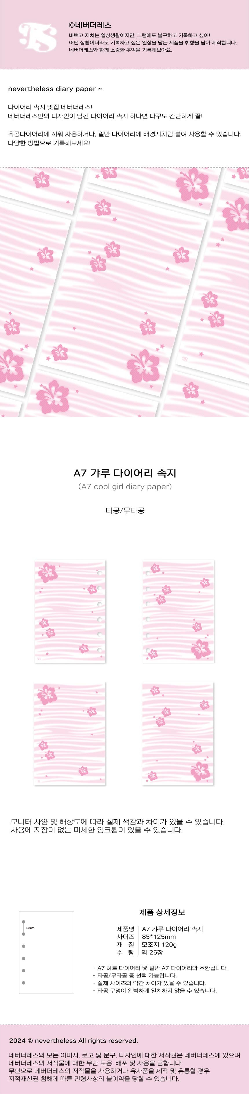 네버더레스| A7 갸루 다이어리 속지(무타공/타공)