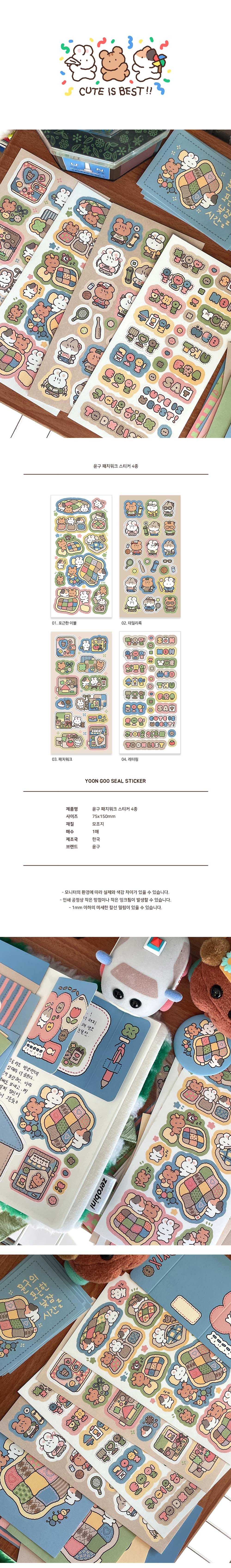 윤구 | 패치워크 스티커 (4종)-포근한이불/데일리룩/패치워크/레터링