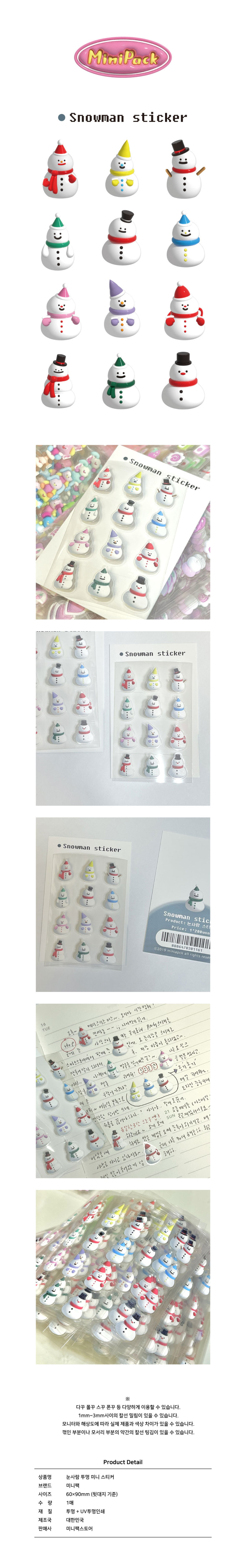 미니팩 | 눈사람 투명 미니 스티커