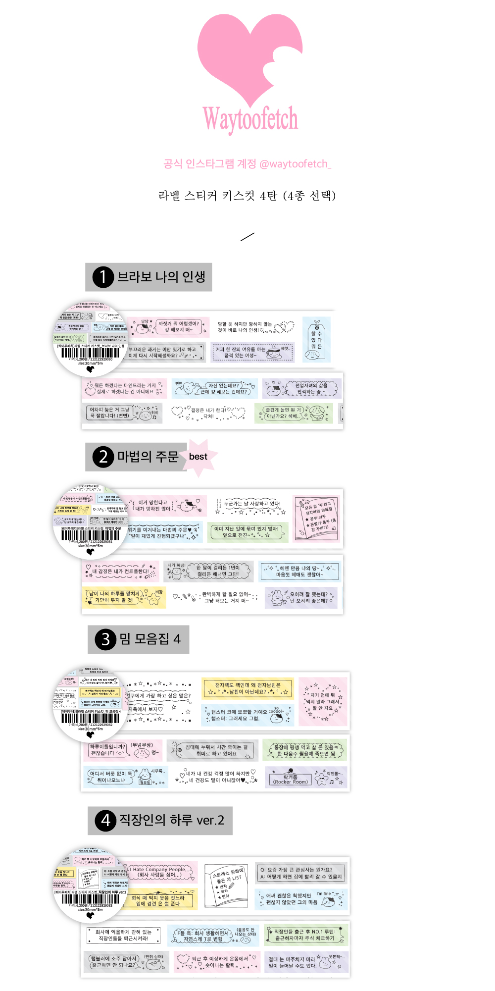웨이투페치 | 라벨 스티커 키스컷 4탄 (브라보 나의 인생/ 마법의 주문/ 밈 모음집 4/ 직장인의 하루 ver.2)