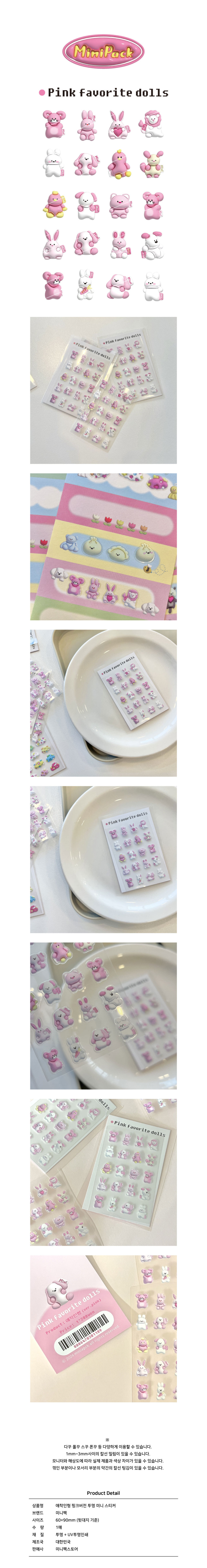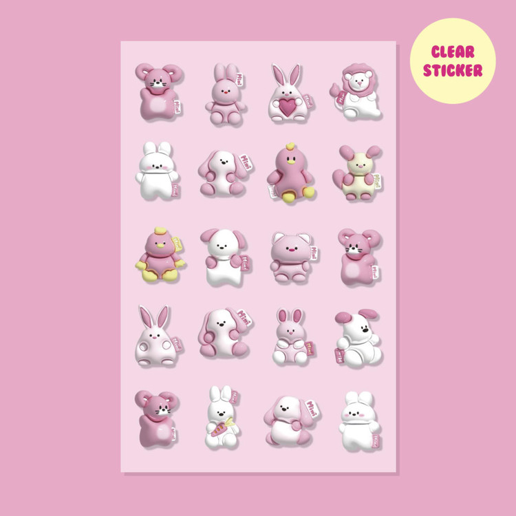 미니팩 | 애착인형 (핑크버전) 미니 투명 스티커