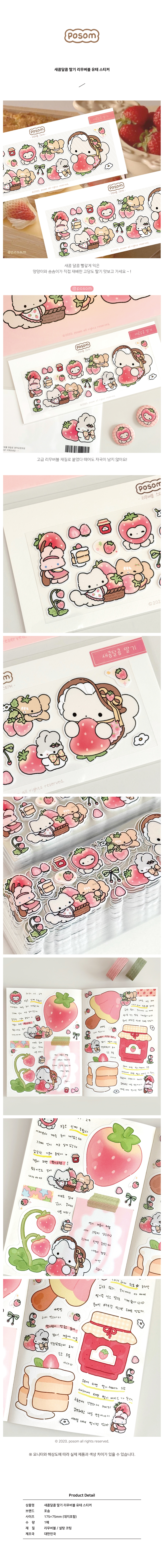 포솜 | 새콤달콤 딸기 리무버블 스티커
