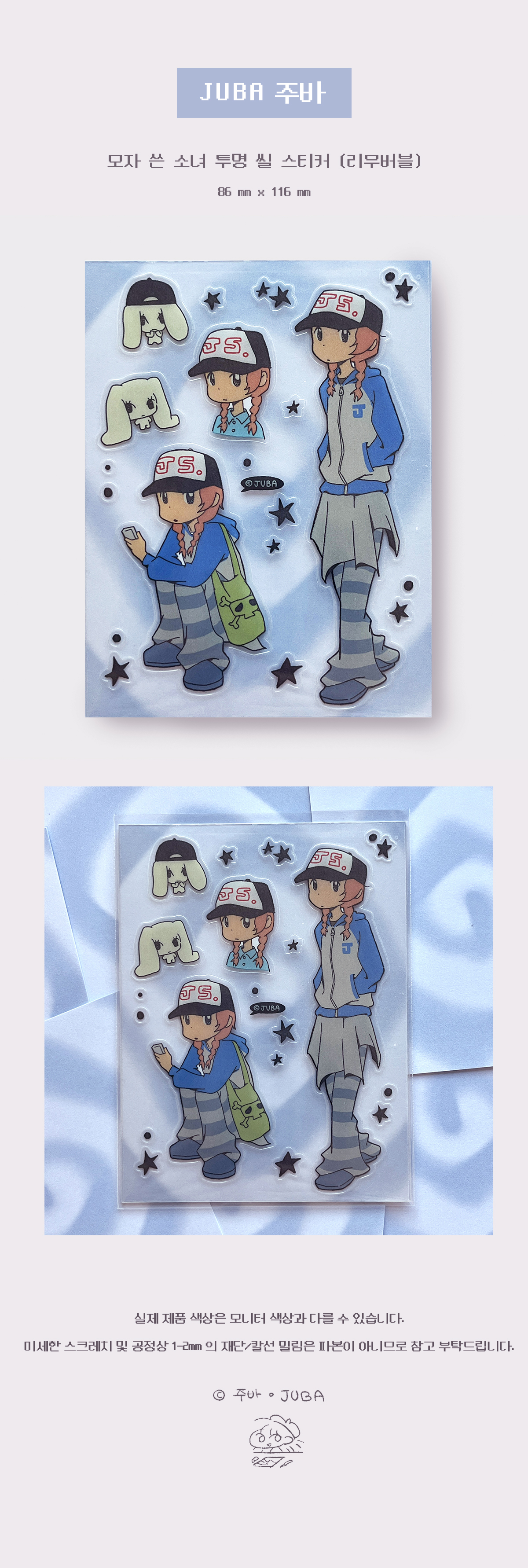 주바 | 모자 쓴 소녀 투명 리무버블 씰스티커