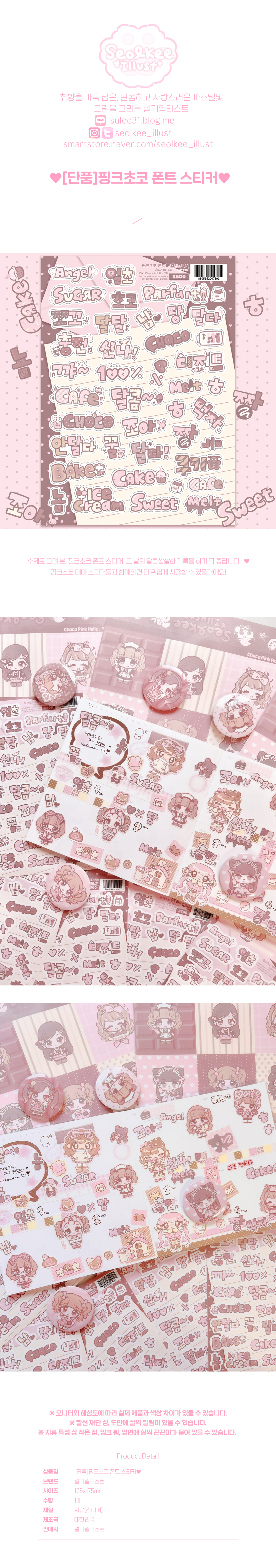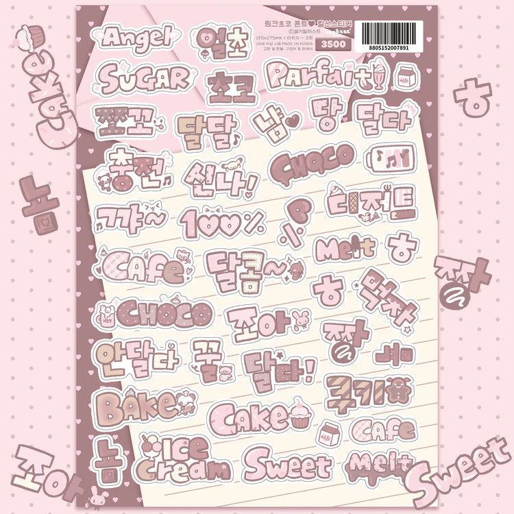 설기일러스트 | 핑크초코 폰트 칼선 스티커