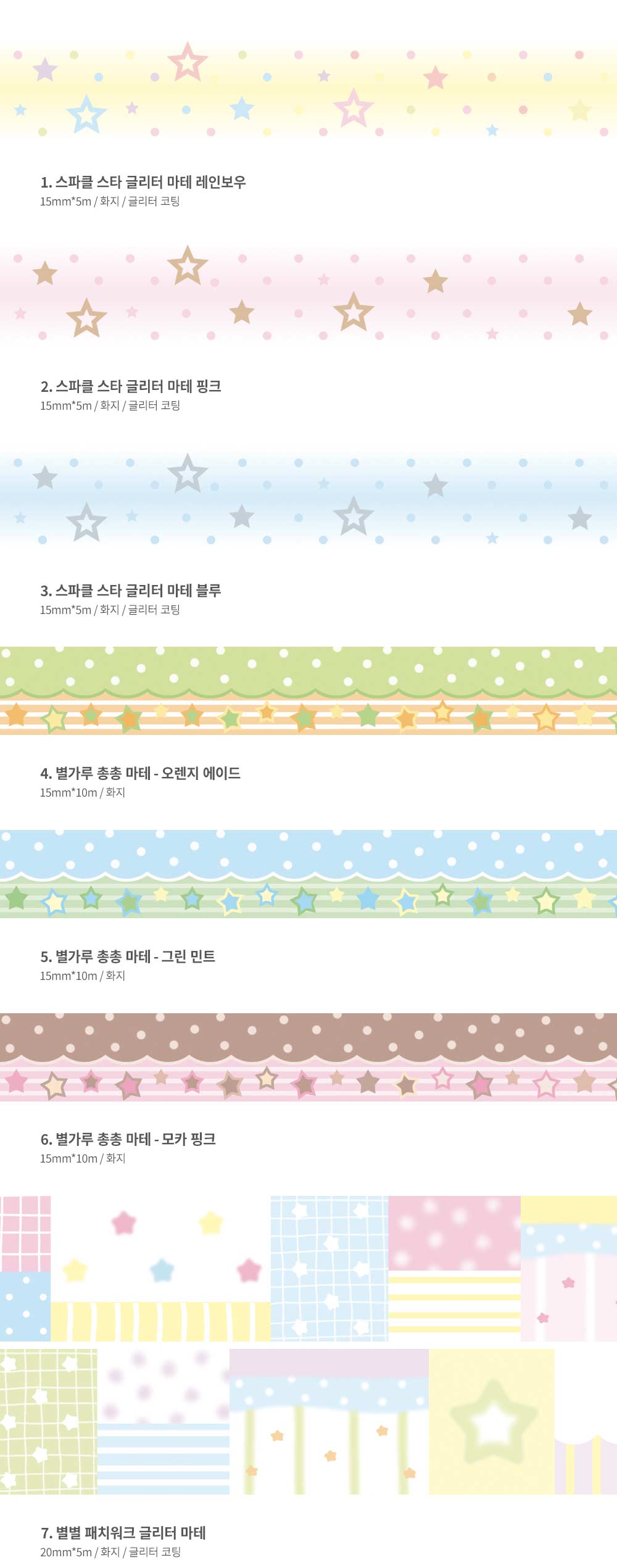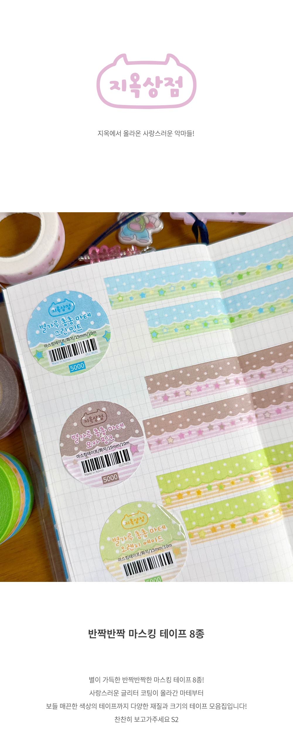 지옥상점 | 반짝반짝 마스킹테이프 (8종)-스파클스타 / 별가루총총 / 별별패치워크 / 블러리스타