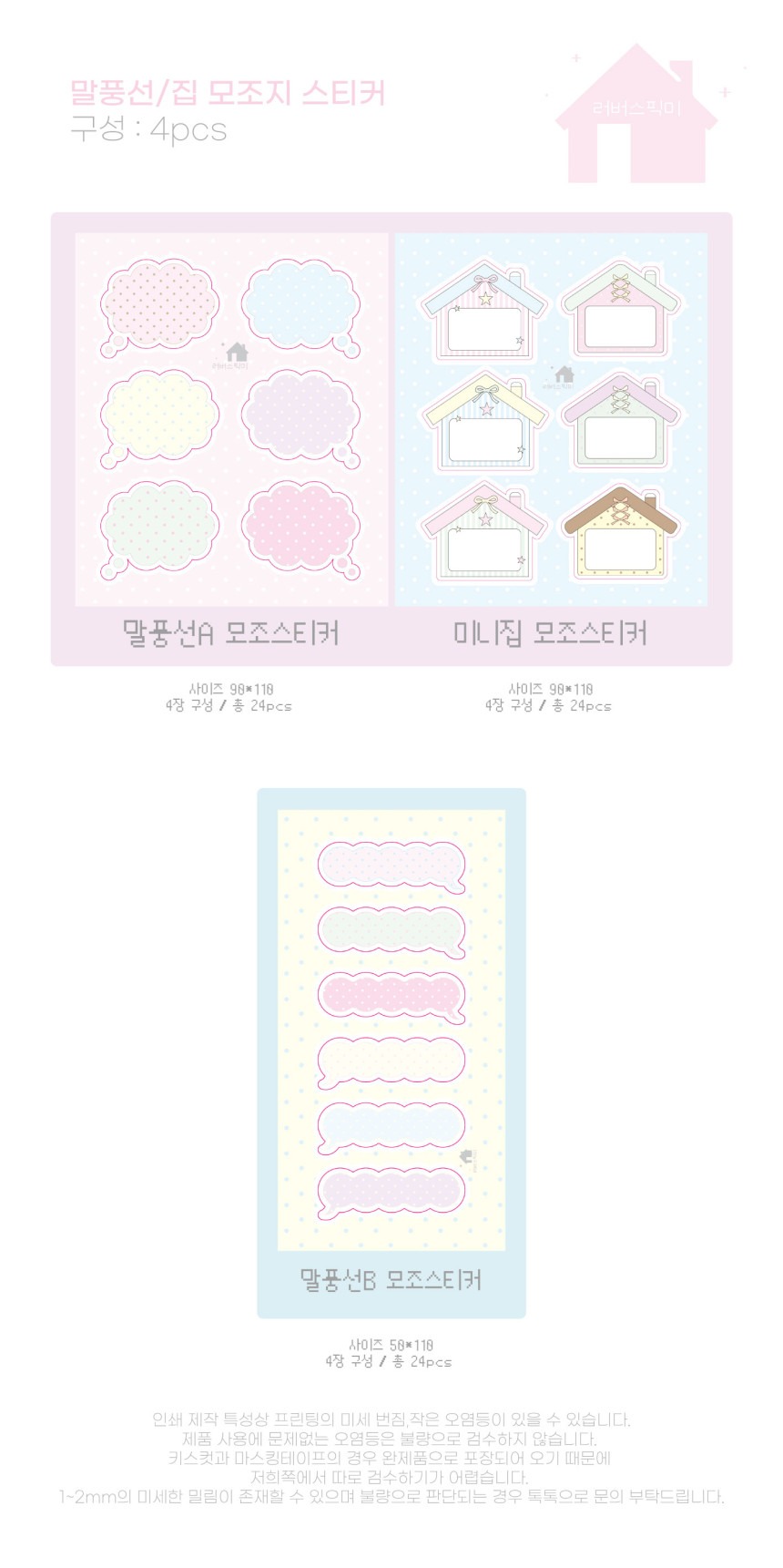러버스픽미 | 말풍선/집 모조지 스티커 (3종)