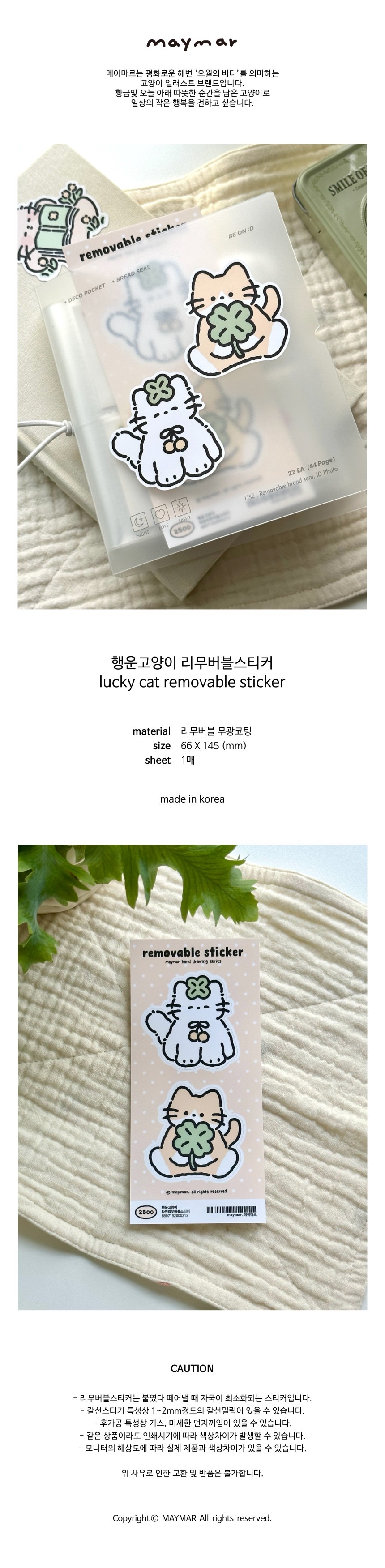 메이마르 | 행운고양이 라인 리무버블 스티커