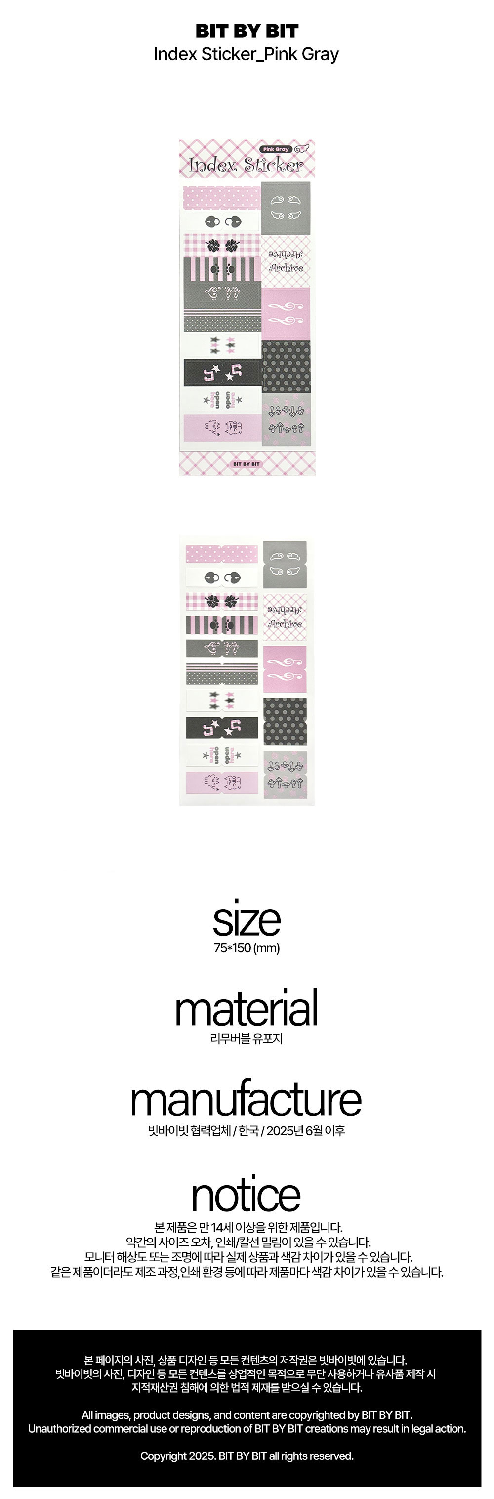 빗바이빗 | Index Sticker_Pink Gray