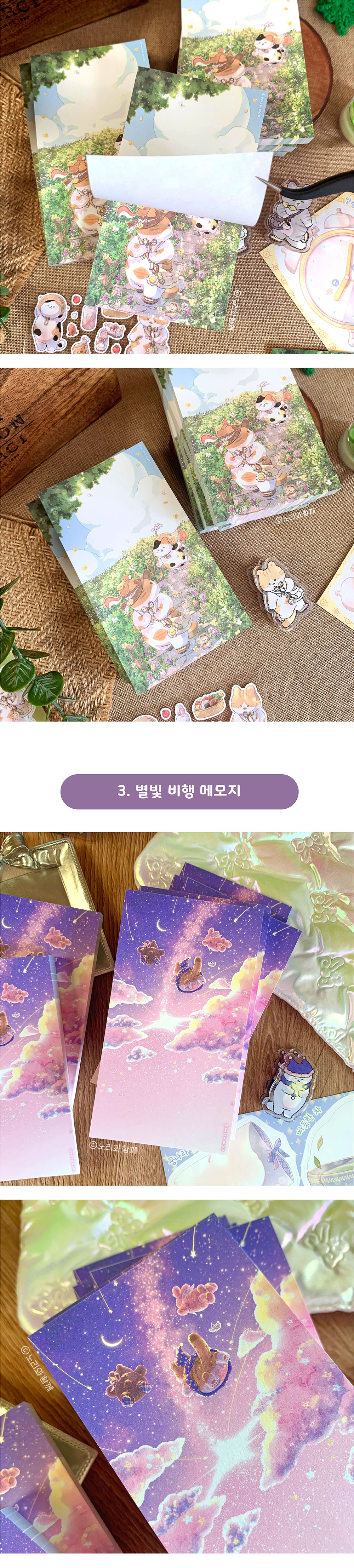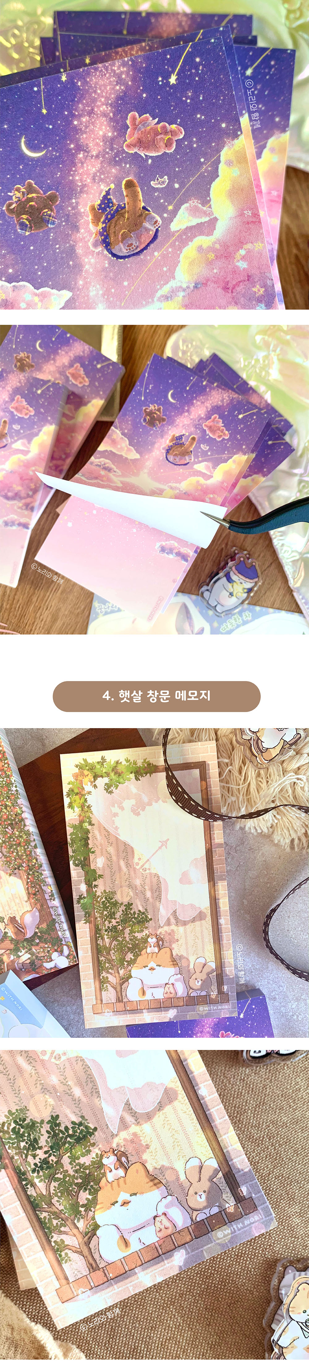 노리와 함께 | 오늘도 포근한 하루 메모지 (4종)-아침 창문 / 산책길 / 별빛 비행 / 햇살 창문