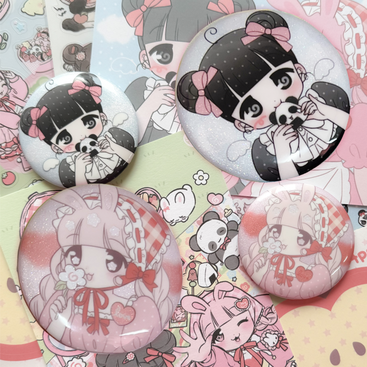 설기일러스트 | 피크닉 글리터 핀버튼 (바니/판다)