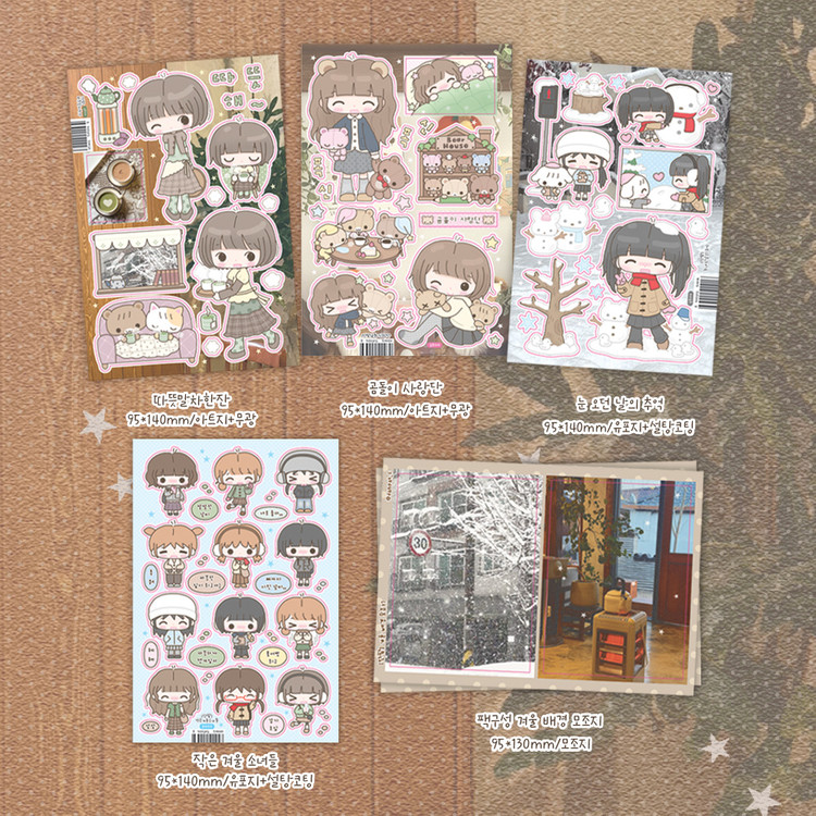 단팥 | 폭닥 겨울 스티커 (눈 내린 날의 추억/따끈말차한잔/곰돌이사랑단/미니 겨울 소녀들)