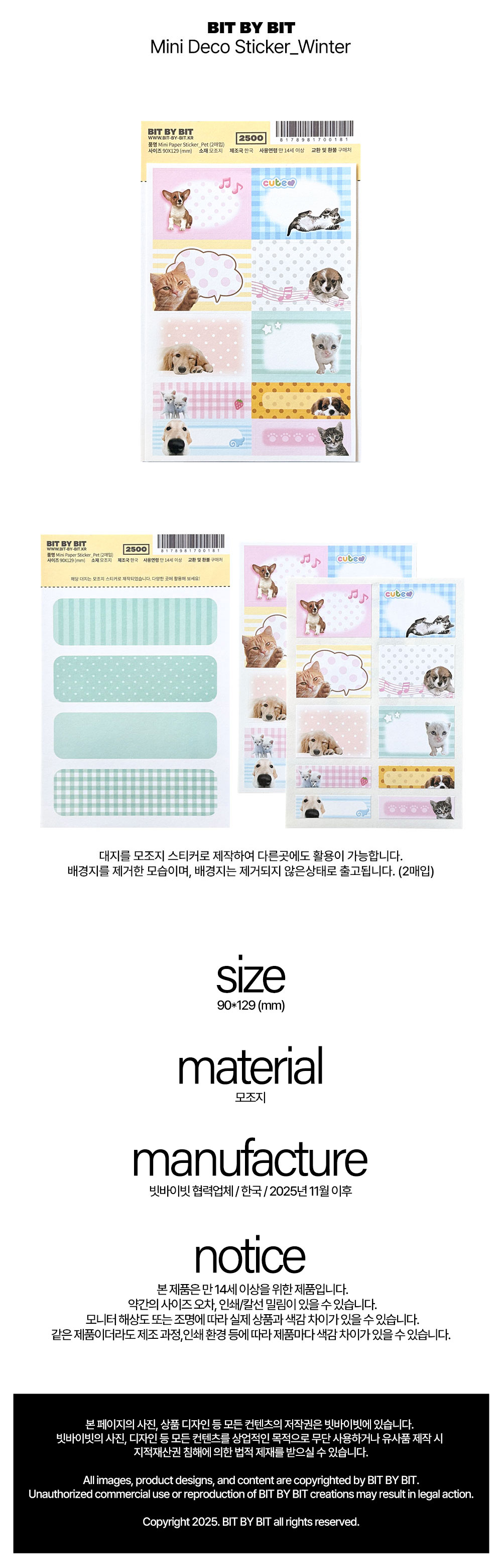 빗바이빗 | Mini Paper Sticker_Pet