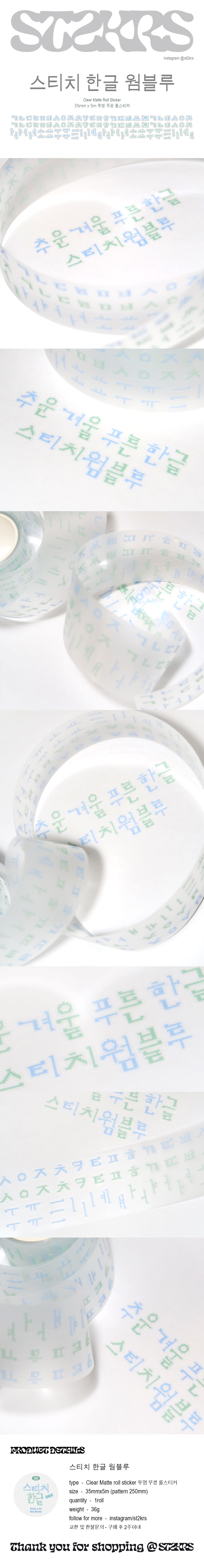 스티커스 (ST2KRS) | 스티치 한글 웜블루 롤스티커 (키스컷테이프)