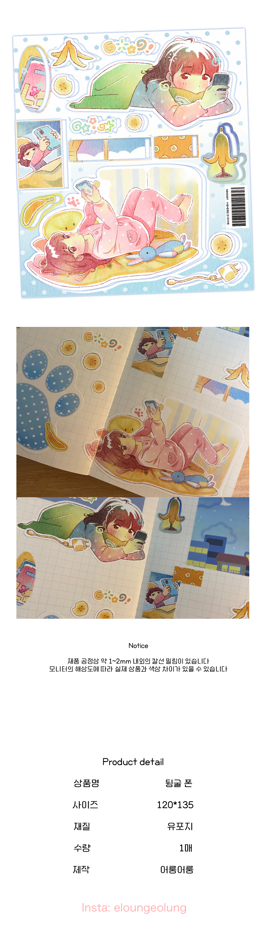 어룽어룽 | 뒹굴 폰 씰스티커