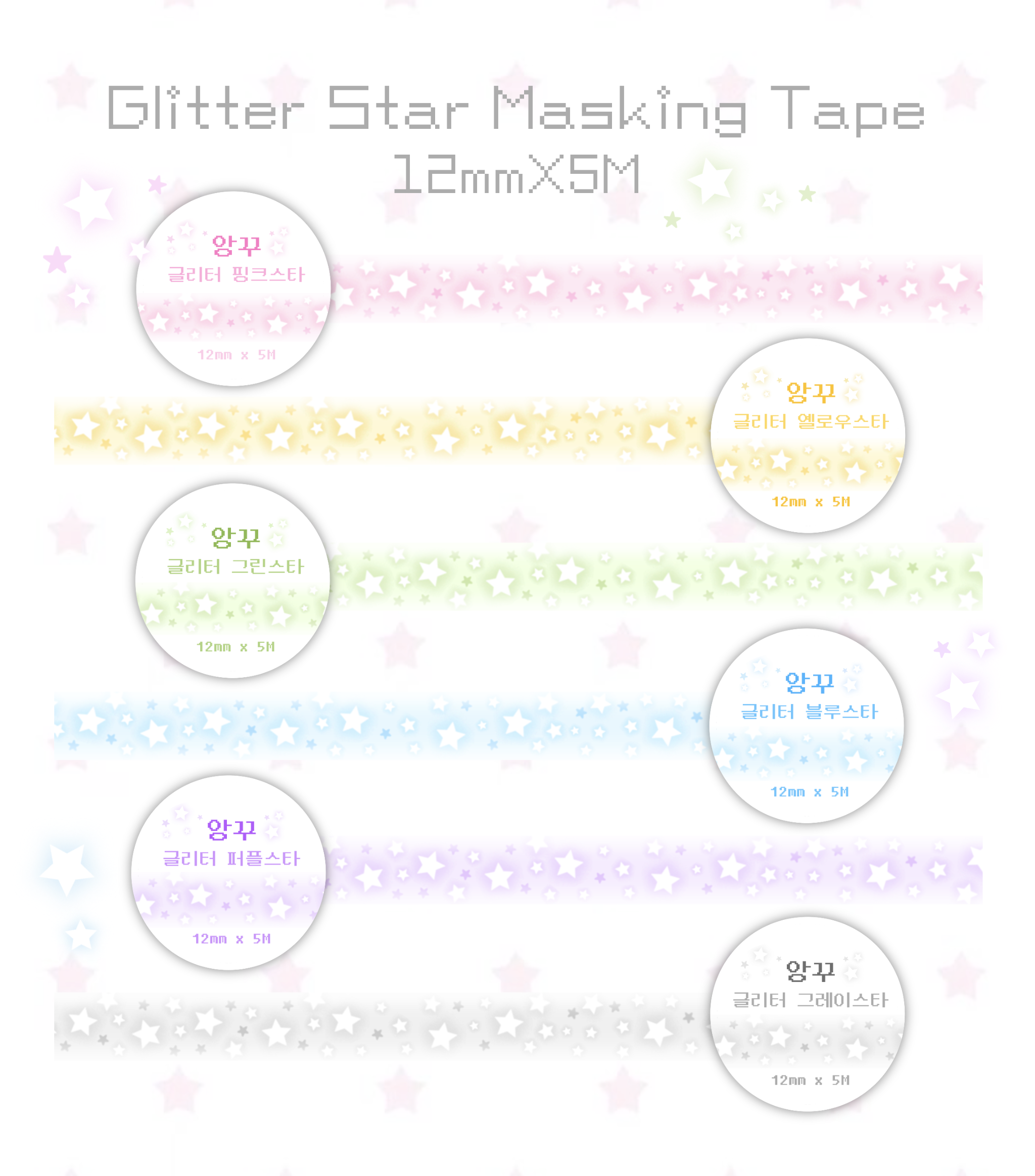 앙꾸 | 글리터 스타 마스킹테이프 (6종)