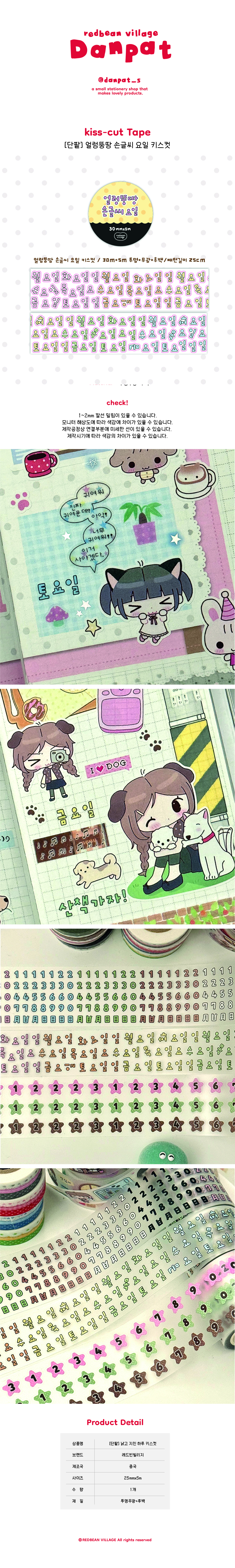 단팥 | 얼렁뚱땅 손글씨 요일 키스컷테이프